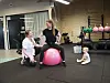 Filip sitter og pludrer på mammas fang, mens fysioterapeut Renate Grønflaten smiler fornøyd. Renate og Ingrid kjenner hverandre godt, etter flere måneder med behandling og trening under svangerskapet.