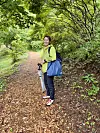 Det er ikke lange distansen deltakerne skal tilbakelegge i løpet av de tre timene et skogsbad vanligvis varer. Stien vi går er omtrent 1,3 kilometer lang, med en høydeforskjell på 50 meter. En monorail er installert for å ta mennesker med funksjonsnedsettelser opp til det øverste platået. Poenget er å være i og oppleve skogen, ikke å gå fra A til B. I løvverket rett over hodene våre, sitter en fugl og synger. Appen jeg bruker hjemme i Norge for fuglegjenkjenning, må melde pass.